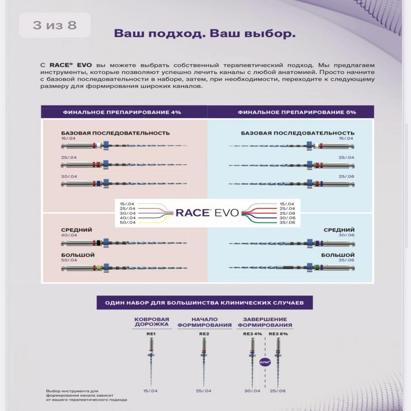 Главная / Каталог / Эндодонтия / Инструменты / Набор RACE EVO sequence 06%, ( 15/04, 25/04, 25/06) , 21 мм, 25мм, 31мм, STERILE (уп.3шт)